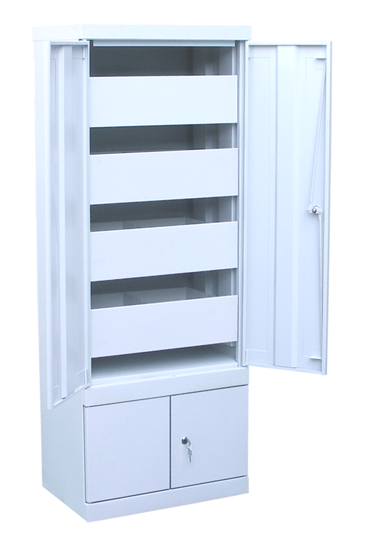 Шкаф ШК-4-Д4 оборудован распашными дверцами и четырьмя выдвижными ящиками на телескопических направляющих, в которых с удобством размещаются документы формата A5. Ящики разделены перегородкой, которая образует два отделения размером 120x216x270 мм.